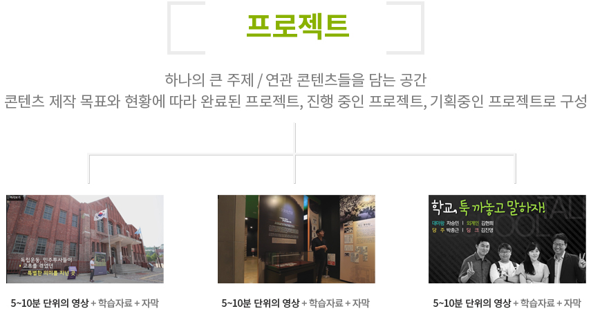 5~10분 내외의 짧은 동영상과 학습자료로 구성되어 있습니다.